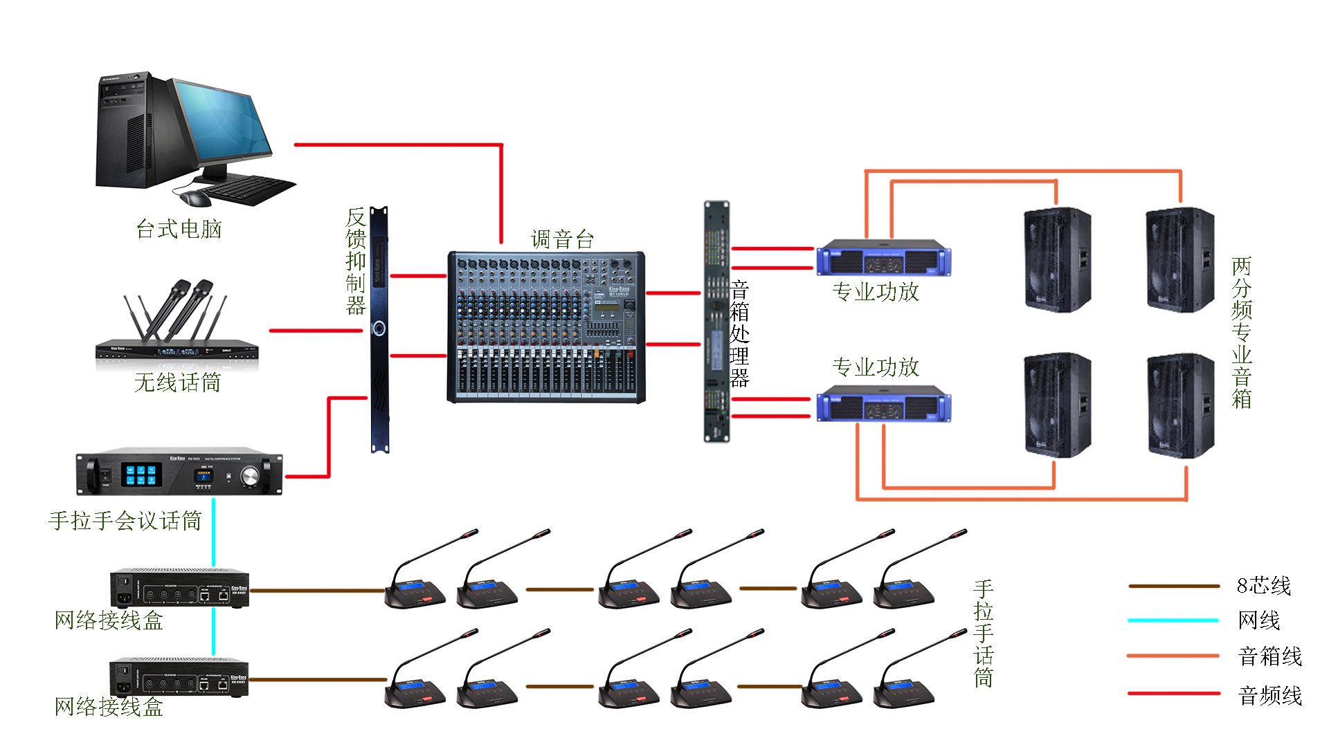無線會議系統(tǒng)兼容無線和有線會議應用,匯集了會議發(fā)言、會議簽到、自定義表決、茶水服務、發(fā)言計時&定時發(fā)言、聲控功能、消息通知、同聲傳譯、電子桌牌、攝像跟蹤、消防聯(lián)動等會議應用功能。