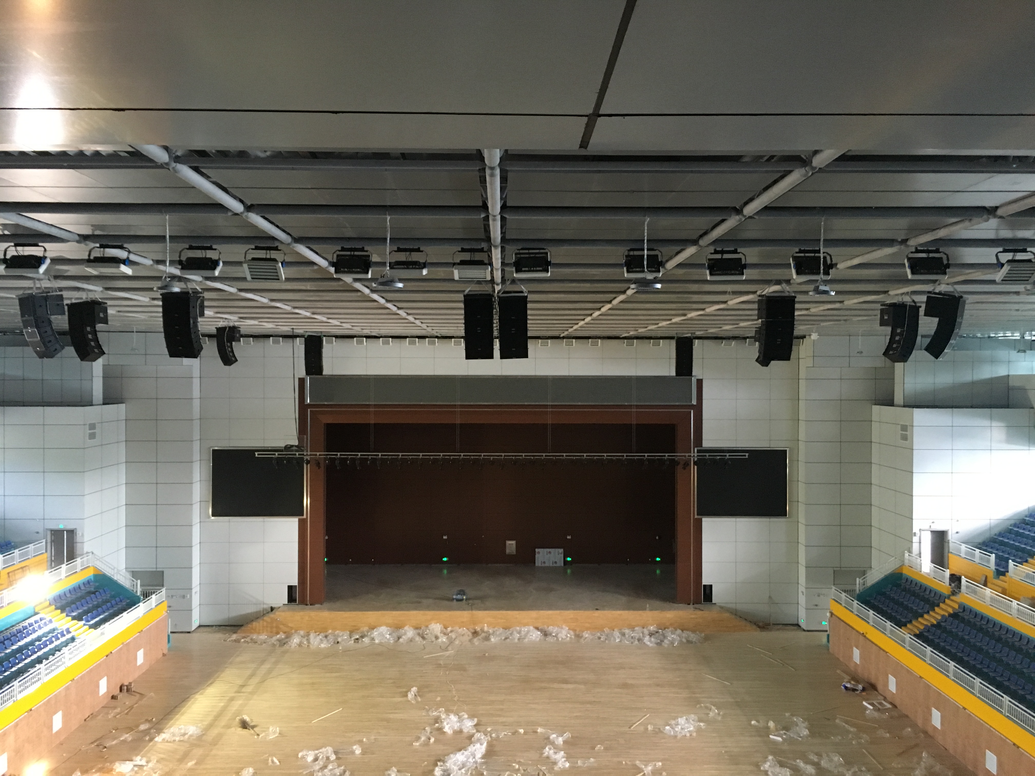 二.馬道下有分散式吸音板,對(duì)揚(yáng)聲器的安裝要求極為苛刻,只能采用分散式安裝,小箱體,能很好的融入裝修風(fēng)格。