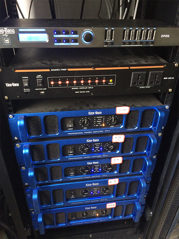 專業擴聲系統簡單來說就是把聲音信號放大,主要由聲源、音頻處理設備、功放及揚聲器系統組成。通過計算會議室的音響場地系數進行設計,保證會議室每個角落的聲場聽覺均勻,音響效果達到語言清晰、無失真、聲場分布均勻。